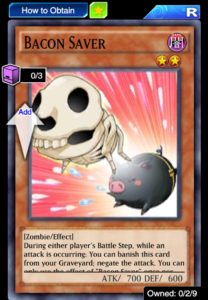 กันตายด้วยการโจมตีได้ 2 ครั้งจากการทิ้งการ์ดนี้จากบนมือ และจากการนำการ์ดใบนี้ออกจากสุสาน ปัจจุบันมีให้แลกในtrade