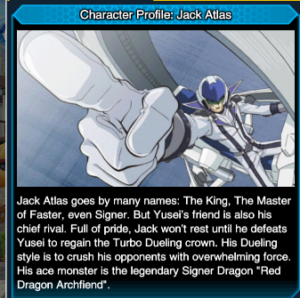 Jack Atlas หรือ แจ็ค แอตลาส ผู้ขี่ดีวีลล้อเดียวปรากฏตัวออกมาแล้ว เราสามารถปลดล็อคแจ็คได้เมื่อสะสมแต้มได้ครบ 300,000 pt ใน Event Atlas Rising