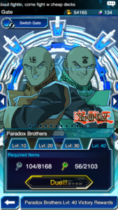 ฝั่งโลกดูเอลมอนเตอร์มีตัวละครที่เพิ่มเข้ามาในเกท (Gate) อีก 4 ตัว เพื่อให้ได้ฟามFarm กัน คือ พี่น้องเขาวงกต(Paradox Brother) เปกาซัส(Maximillion Pegasus) และบาคุระร่างมืด(Yami Bakura) และตัวละครล่าสุดคือ ยูกิร่างต้น (Muto Yugi) โดยที่ตัวละครทั้งหมดจะโผล่มาเมื่อเราเล่นถึง Stage13 ในโลก Duel World (DM)