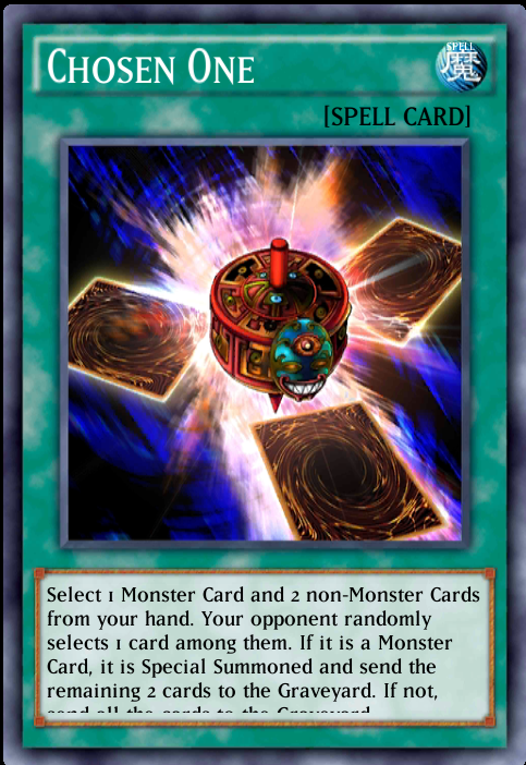 ชนะ 1 ครั้ง | เลือกมอนเตอร์ 1ใบ และการ์ดที่ไม่ใช่มอนเตอร์ 2 ใบ จากบนมือ สุ่มเลือกการ์ดจากในนั้น 1 ใบ ถ้าเป็นการ์ดมอนเตอร์สามารถอัญเชิญพิเศษการ์ดใบดังกล่าวได้ แล้วทิ้งการ์ดอีก 2 ใบ ลงสุสาน แต่ถ้าใบที่สุ่มได้ไม่ใช่การ์ดมอนเตอร์ ทิ้งการ์ดทั้งหมดลงสุสาน |