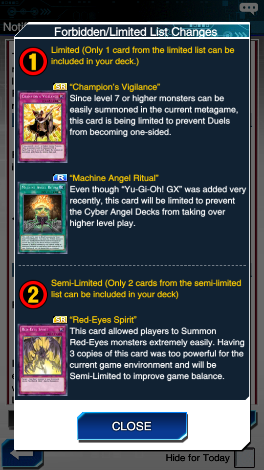 ใบที่โดนมี Champion’s Vigiliance และ Machine Angel Ritual ที่ให้ใส่ในเด็คได้ใบเดียว