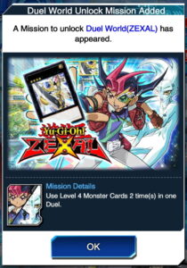 โลก Zexal กับ มอนเตอร์เอ็กซ์ซีด (XYZ) มาให้ปลดล็อคแล้ว โดยการปลดล็อคโลก Zexal ได้โดยการใช้มอนเตอร์เลเวล 4 จำนวน 2 ครั้งในการดูเอล 1 เกม