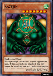 x3 | เมื่อจะสังเวยเรียกมอนเตอร์ธาตุลม เราสามารถใช้การ์ดนี้แทนมอนเตอร์ 2 ตัวเพื่อสังเวยได้ |