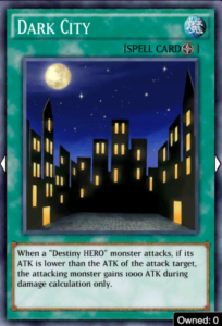When a “Destiny HERO” monster attacks, if its ATK is lower than the ATK of the attack target, the attacking monster gains 1000 ATK during damage calculation only.