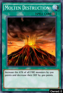 Can be used after your Life Points are at 3000 or below. Play the Field Spell “Molten Destruction.” If there already is Field Spell on your side of the Field, return it to your hand. This skill can only be used once per Duel. |