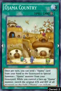 Begins Duel with the Field Spell “Ojama Country” activated. |