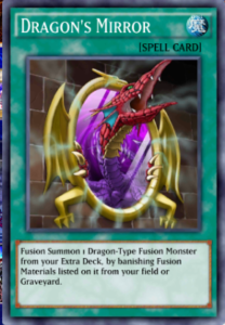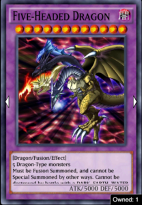 | เริ่มต้นดูเอลด้วยการมี “Dragon’s Mirror” ในเด็ค และ “Five-Headed Dragon” ในเอ็กซ์ตร้าเด็คของเรา เมื่อไลฟ์พอยต์เราลดลง 1500 นำการ์ดจากบนมือกลับเข้าเด็ค 1 ใบ และนำการ์ด “Dragon’s Mirror” จากในเด็คขึ้นมือ |