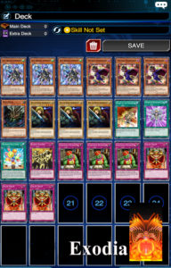 เริ่มต้นการดูเอลด้วยการมีชิ้นส่วนเอ็กโซเดีย 5 ใบ ในเด็ค