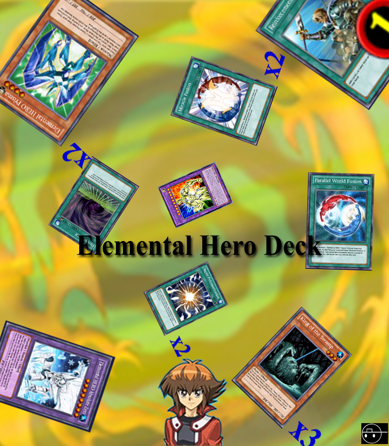 การ์ดหลักๆในเด็คเป็นการ์ดองค์ประกอบในการฟิวชั่นอย่าง King of the Swamp 3 ใบ, Fusion Gate 2 ใบ, Super Polymerization 2ใบ, Parallel World Fusion 1 ใบ, Elemental HERO Absolute Zero 1 ใบ, Elemental HERO Electrum 1 ใบ มีการ์ดลิมิต 1 ใบคือ Reinforcement of the Army ที่ใช้นำการ์ดมอนเตอร์เผ่านักรบจากในเด็คขึ้นมือ นอกนั้นก็จะเป็นการ์ดซับพอร์ต Elemental HERO